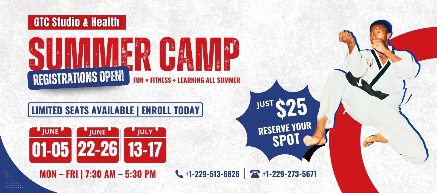 We’re ready to welcome you to our trusted community for martial arts classes, fitness, and fun. Call to enroll in our summer camps, youth programs, or taekwondo classes for adults. Discover the best taekwondo in Cordele, GA, motivating martial arts classes, proven self-defense classes, and supportive training in our expert personal training studios. Join GTC Studio & Health today! Enroll now!